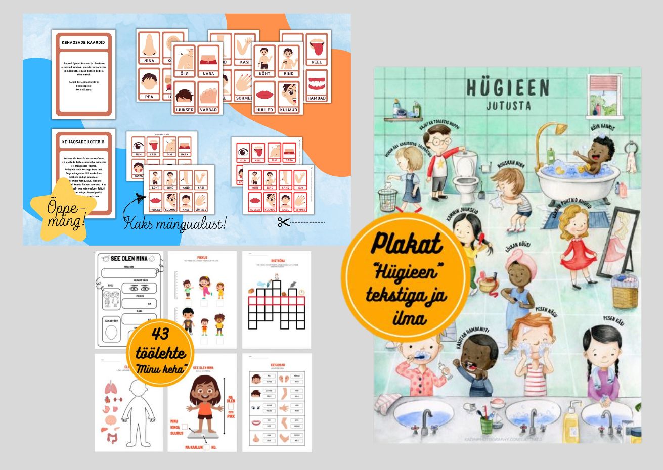 Komplektis on kaks postrit, jutustamis/sorteerimismäng ning liikumismängu juhis.