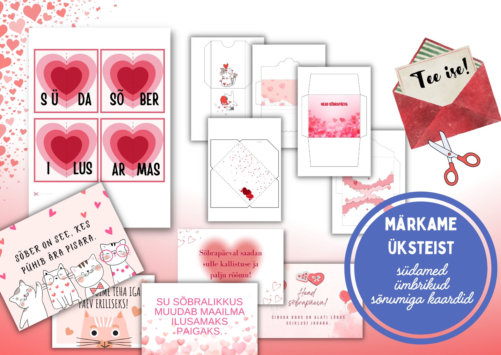 20 sõnakaarti (lõika südamed pooleks ja moodusta sõnu).