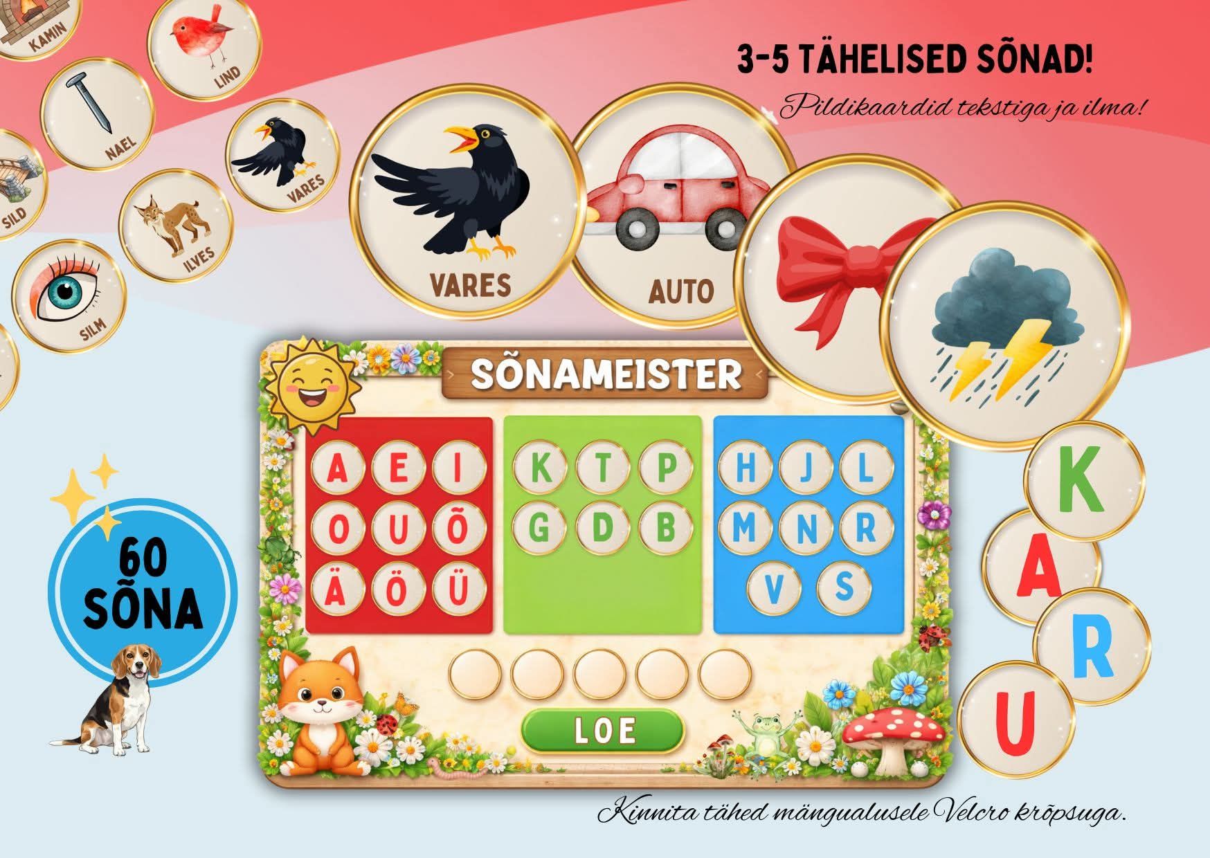 Iga pildi juurde kuulub haarav lugu, mis aitab häälikuid ja sõnu meelde jätta.Failis on olemas nii suur A4 (seinakaardid/rühmatöö) kui ka A5 (kaks tähte lehel – parajad õppekaardid kätte võtmiseks. Prindi välja üksikute lehtedena, loo seinale interaktiivne täherada või köida kokku lapse esimeseks päris oma täheraamatuks.