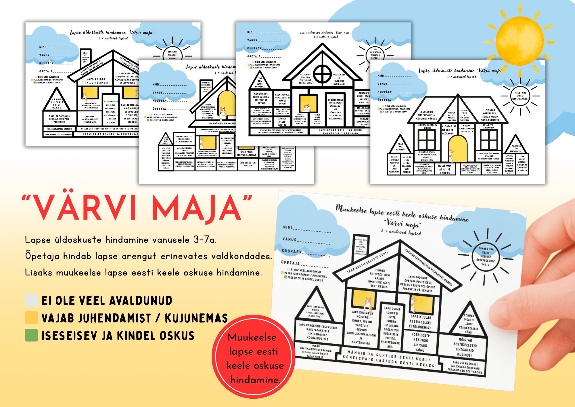 Värvi, lõika ja kleebi – just nii lihtne ja lõbus on oma maja ehitamine! Lapsed saavad ise kokku panna nelja toaga maja.
